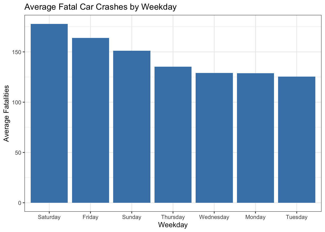 title = "Average Fatal Car Crashes by Weekday") +